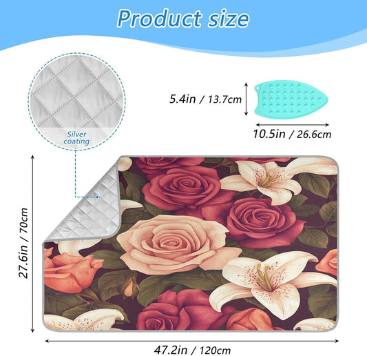 Roses and Lily Flowers Ironing Mat Thickened Ironing Blanket Travel Portable Double-Side Using Ironing Pad Travel Isolate Heat Pad Cover for Washer Dryer Table Top Countertop 27.6x47.2in