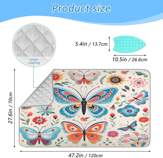Decorative Butterfly Floral Ironing Mat Thickened Ironing Blanket Travel Portable Double-Side Using Ironing Pad Travel Isolate Heat Pad Cover for Washer Dryer Table Top Countertop 27.6x47.2in