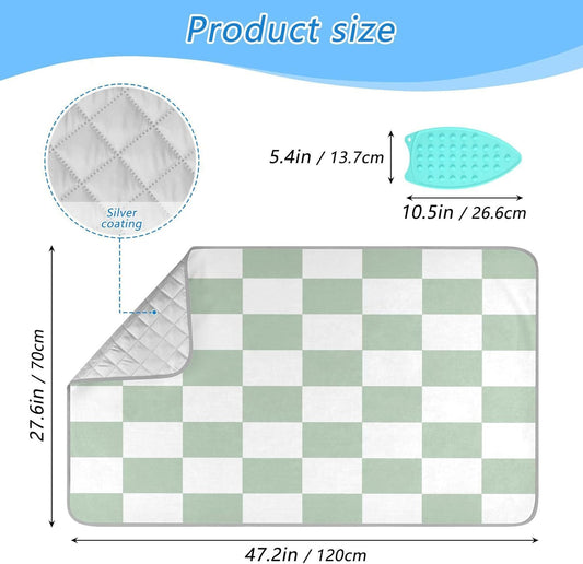 Checkered Green and White Png Ironing Mat Thickened Ironing Blanket Travel Portable Double-Side Using Ironing Pad Travel Isolate Heat Pad Cover for Washer Dryer Table Top Countertop 27.6x47.2in
