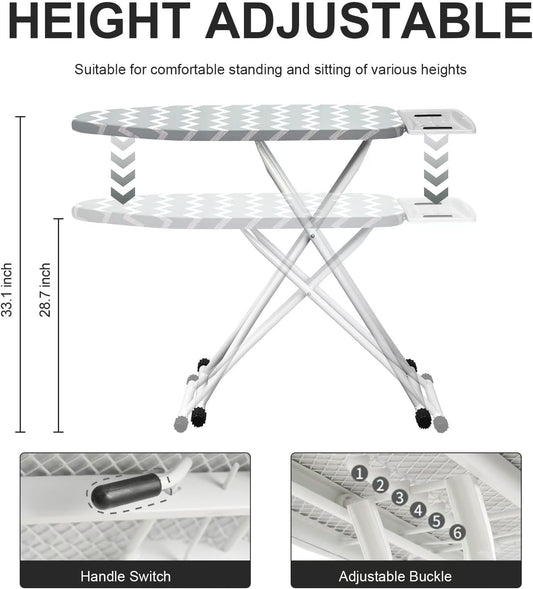 Ironing Board,Foldable Ironing Board Adjustable Height Compact Iron Board Thick Steel Tube Iron Board with Holder,Replacing Cloth Cover and Mini Handheld Gloves (Grey Texture)