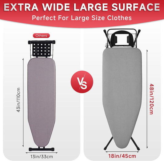 Ironing Board Full Size 53x13, RAINHOL Heavy Duty Iron Board with Thick Padded Cover, Height Adjustable Ironing Boards with Smart Hanger, Heat-Resistant Silicone Pad Iron Rest
