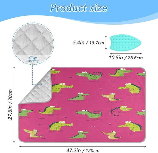 Pink Funny Crocodiles Ironing Mat Thickened Ironing Blanket Travel Portable Double-Side Using Ironing Pad Travel Isolate Heat Pad Cover for Washer Dryer Table Top Countertop 27.6x47.2in