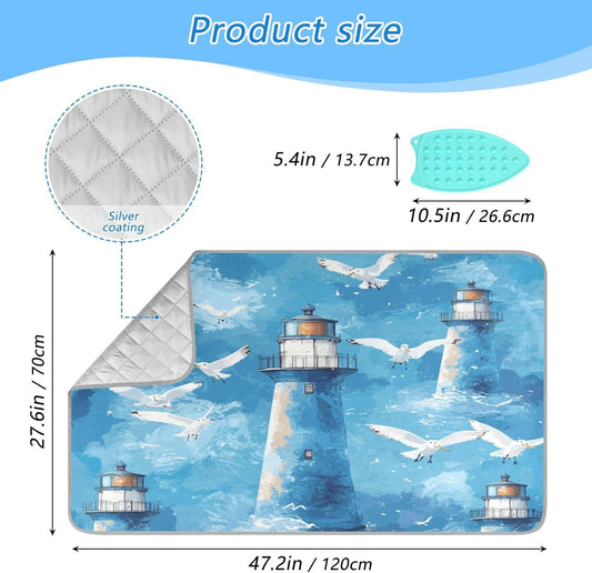 Watercolor Blue Lighthouses and Seagulls Ironing Mat Thickened Ironing Blanket Travel Portable Double-Side Using Ironing Pad Travel Isolate Heat Pad Cover for Washer Dryer Table Top Countertop