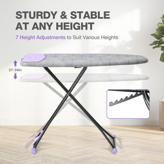 Ironing Board 13" X 43" W/Extra Thick Heavy Duty Padded Cover, Height Adjustable,Heat & Scorch Resistant Fabric, Anti-Skid Feet, Extra Wide, Easy to Fold Checkered Gray