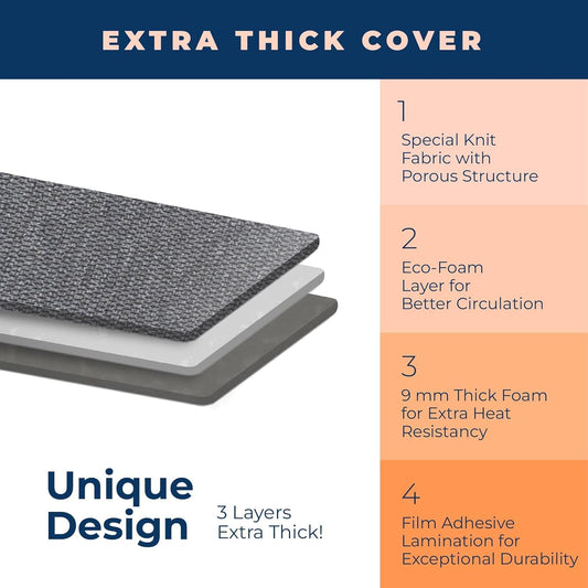 Ironing Board Cover and Pad Extra Thick Heavy Duty Padded 4 Layers Non Stick Scorch and Stain Resistant 15x54 and 3 Fasteners Elastic Edge with Bonus Protective Scorch Mesh Cloth
