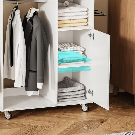 Rolling Ironing Board with Storage Cabinet, Multipurpose Wooden Ironing Cabinet with Wheels, Ironing Table with Heat-Resistant Sponge