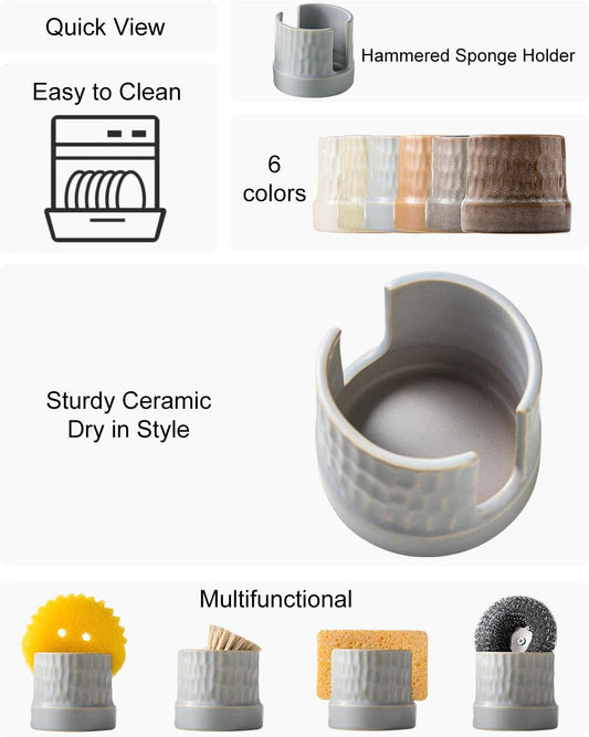 Kitchen Sponge Holder, Ceramic Dish Sponge Holder Scrubby Daddy Farmhouse Dish Rack Brush Holder for Bathroom, Kitchen, Sink, Special Gray