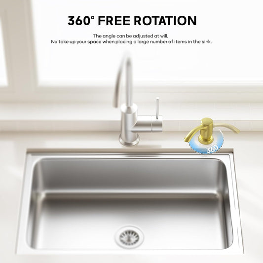 Soap Dispenser for Kitchen Sink, Built in Sink Soap Dispenser Lotion Dispenser with 17 OZ Bottle, Refill from The Top Bar Sink Soap Dispenser, Gold