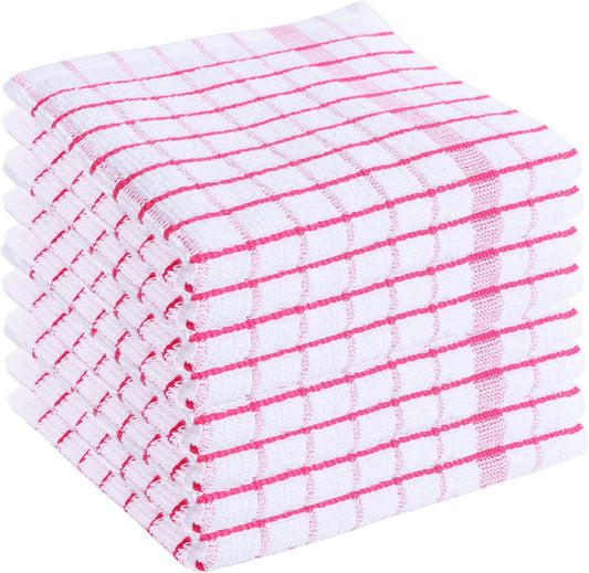 AMOUR INFINI Kitchen Dish Cloths Set of 8 - Ultra Soft, Highly Absorbent, Quick-Drying Terry Cotton Dishcloths 12"x12" Inch Wash & Cleaning Cloths for Kitchen & Dishwashing (Pink)