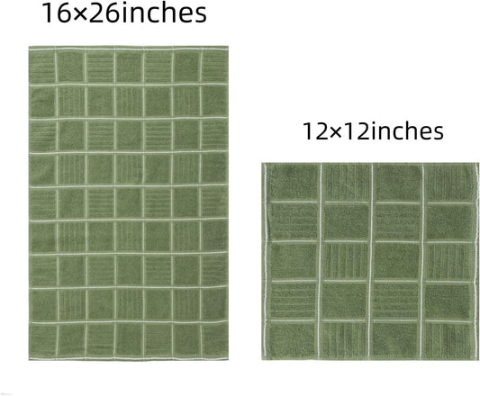 AMOUR INFINI Kitchen Dish Cloths Set of 8 - Ultra Soft, Highly Absorbent, Quick-Drying Terry Cotton Dishcloths 12"x12" Inch Wash & Cleaning Cloths for Kitchen & Dishwashing (Green)