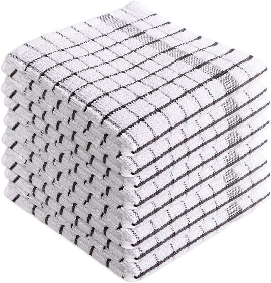 AMOUR INFINI Kitchen Dish Cloths Set of 8 - Ultra Soft, Highly Absorbent, Quick-Drying Terry Cotton Dishcloths 12"x12" Inch Wash & Cleaning Cloths for Kitchen & Dishwashing (D.Grey)