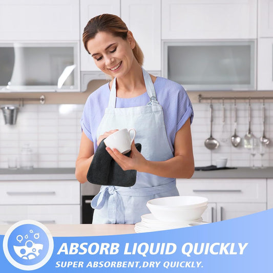 KinHwa Kitchen Washcloths for Dishes Absorbent Microfiber Dish Cloths Quick Dry Dish Rags with Poly Scour Scrub Side Ideal for Kitchen Cleaning (Black, 7inchx7inch 12 Pack)