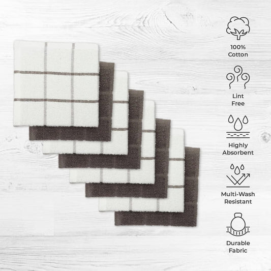 100% Cotton Terry Dish Cloth & Dish Towel, 6 Pack, Super Soft and Absorbent Kitchen Towels, Perfect for Kitchen Cleaning and Dish Washing (Grey (Solid and Checks) 8 Pack)