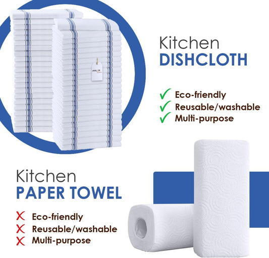 Dish Towels Set (Value Pack of 30) Size 15x25 Inch, 100% Cotton Soft & Absorbent Linen Kitchen Towels, Tea Towels, Reusable Cleaning Cloths for Household Cleaning (Blue)