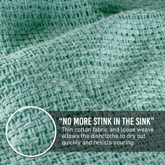 Old Fashion 100% Cotton Dishcloths - Set of 4 Mixed Colors - 2 Mint/2 Natural -11" x 11"