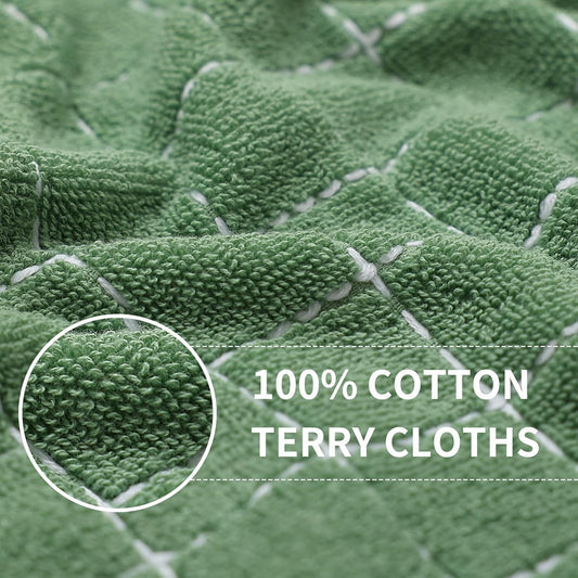 Homaxy 100% Cotton Terry Kitchen Towels(Grass Green, 13 x 28 inches), Checkered Designed, Soft and Super Absorbent Dish Towels, 4 Pack