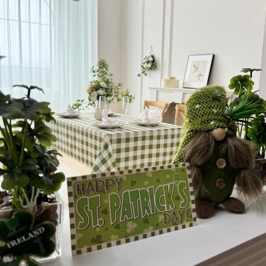 Saint Patricks Day Classic Buffalo Shamrock Tablecloth Fabric - Oblong 58x144 Inch Water Proof Checkered Table Cloth for Indoor Outdoor - Irish-Themed Gifts Table Cover for Holiday, Party