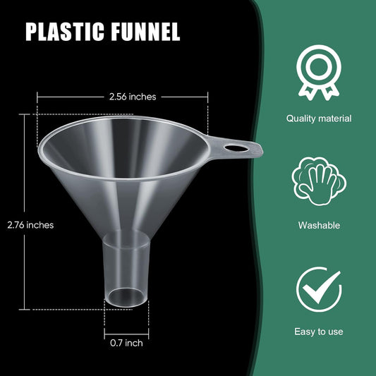 4 Packs Small Plastic Funnel for Filling Small Bottles 2.56 Inch Clear Wide Mouth Plastic Funnel for Filling Water Powder Essential Oils Perfumes Kitchen Bath Garage Use