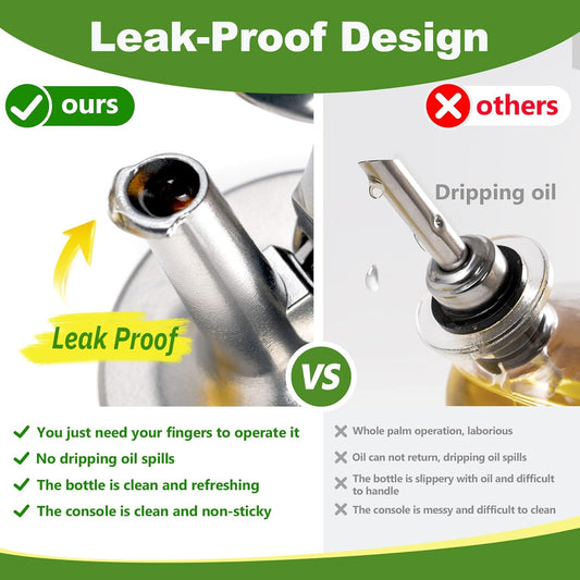 Glass Olive Oil Dispenser Bottle for Kitchen Shatterproof & Leakproof Oil and Vinegar Dispenser Set with Stainless Steel Spout & Rubber Bottom 17 oz Olive Oil Bottle for Cooking, Set of 2