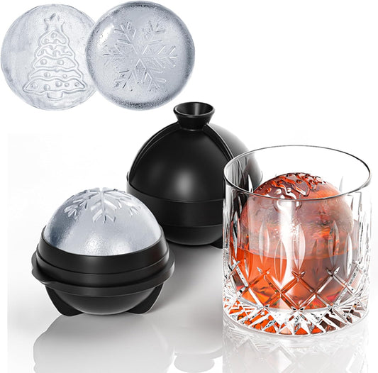 Novelty Christmas Tree Snowflake Ice Ball Maker Mold Set of 2, Christmas Ornament Ice Molds, 2.4" Large Holiday Round Whiskey Ice Cube Mold for Bourbon, Cocktails, Gifts for Men