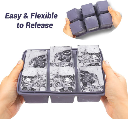 Mossime Large Ice Cube Molds: Square Whiskey Silicone Ice Cube Trays With Lid - 2pack Old Fashioned Big Silicone Ice Cube Tray for Cocktail - 2inch Easy Release Ice Cube Maker For Freezer