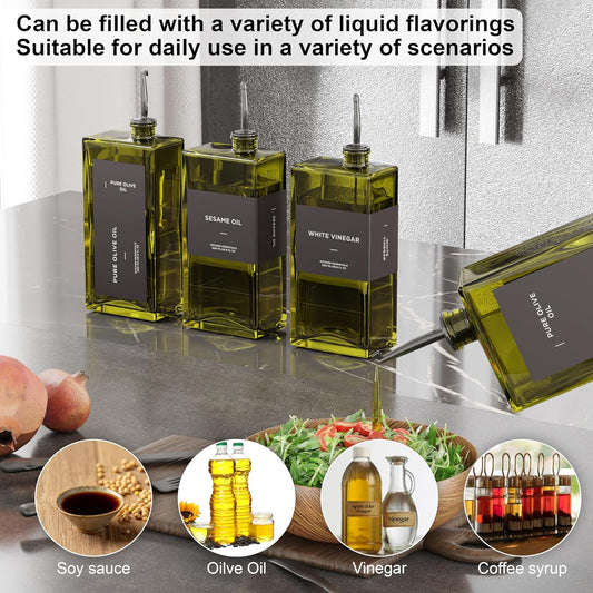 Olive Oil Dispenser for Kitchen, 16.9 oz/ 500 ml Olive Oil Dispenser Bottle, Glass Oil Bottles for Kitchen with 8 Stainless Steel Pourers, 40 Labels, 4 Pcs, Green