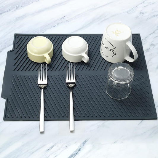 Silicone Dish Draining Mat, Eco Friendly Dish Drying Mat Kitchen Counter Anti-Skid and Heat Insulation Pad, Sink Drainer Mat with Dense Drainage Grooves (L (20"×16"))