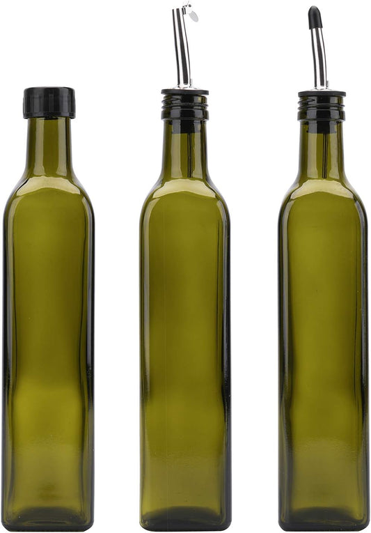 Kingrol 6 Pack 8 oz Glass Olive Oil Dispenser Bottles, Oil and Vinegar Cruets with Stainless Steel Pourer Spouts, Non-Drip Oil Bottles for Kitchen