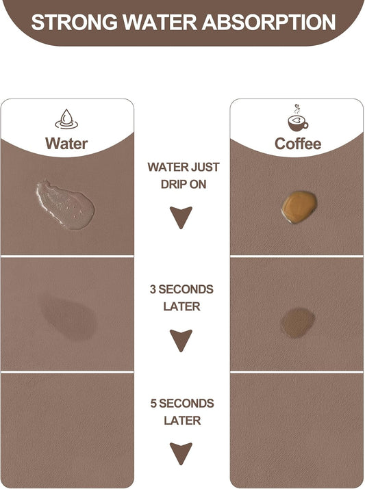 Dish Drying Mat for Kitchen Counter, 12"x19" Dish Drying Pad with Non-slip Rubber Backed, Hide Stain Anti Absorbent for Kitchen Counter, Drying Mat for Coffee Machine Dish Rack (Brown)