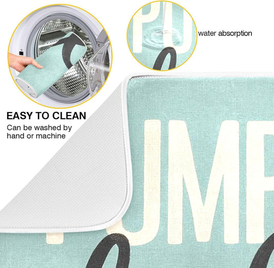 Hello Pumpkin Turquoise Fall Dish Drying Mat for Kitchen Countertop 18x24 Aqua Teal Autumn Large Drying Mat Reusable Quick Dry Dish Sink Mats Easy Clean Decorative Essentials