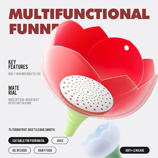 Li & Zhao Kitchen Funnels - 2 PCS Canning Funnels for Kitchen Use Filling Bottles Oil Funnel Silicone Funnel Bottle Liquid Transfer Filling Liquid,Oils,Spices for Bottles,Jar(Red & Blue)