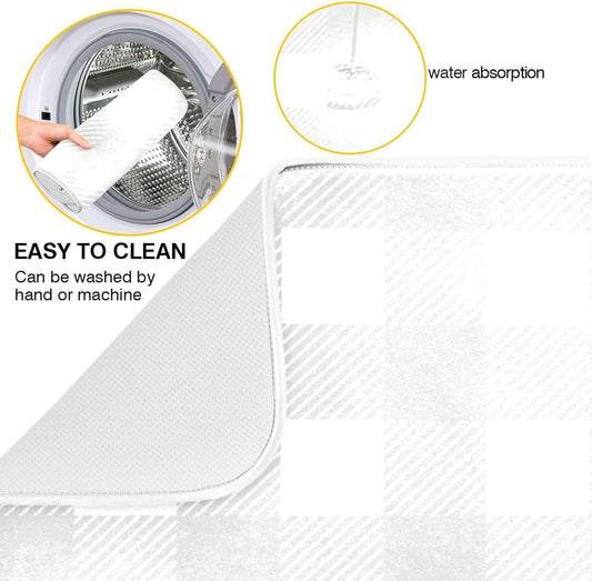 White and Black Buffalo Plaid Dish Drying Mat 18x24 for Kitchen Classic Buffalo Check Dishes Pad Dish Drainer Rack Mats Absorbent Fast Dry Kitchen Accessories