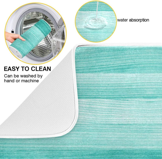 Teal Turquoise Green Wood Texture Dish Drying Mat 16x18 for Kitchen Green Blue Wooden Printing Dishes Pad Dish Drainer Rack Mats Absorbent Fast Dry Kitchen Accessories