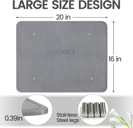 Large Stone Dish Drying Mats for Kitchen Counter,20"(L)×16"(W) Diatomaceous Earth Stone Mat With 4pc silver metal feet,Super Absorbent Fast Drying,Non-Slip Multi-purpose Kitchen Mat