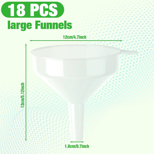 Honeydak 18 Pieces Multi-Purpose Plastic Funnels 4.7 Inch Wide Mouth Funnels for Filling Bottles, Jars, Containers Lab Use Oil Funnel for Gas, Car Oil, Lubricants and Fluids (White)