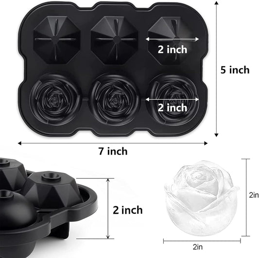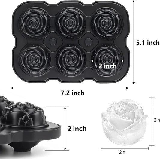 Rose Ice Cube Tray,ZACHDEE 2" Flower Silicone Ice Cube Tray With Covers,6 Easy Release Large Ice Ball for Cocktails, Drinks, Whiskey, Bourbon & Homemade Juice