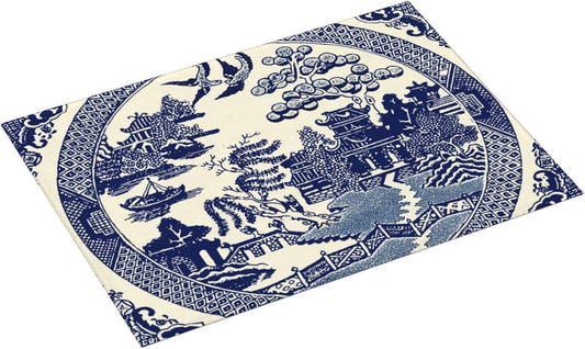 Dish Drying Mat For Kitchen Counter Absorbent Dish Mat Reversible Drainer Drying Kitchen Mat (Oriental Style Chinese Blue Willow, 16"x18")