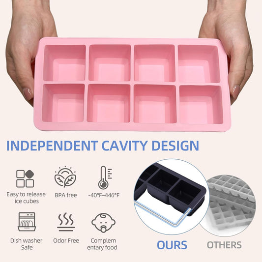2 Pack Silicone 2 Inch Large Ice Cube Molds for Cocktails Wine Fruit and Bourbon Whiskey Easy Release Ice Cube Tray with Lid Ideal for Cold Drinks and Entertaining Gatherings (Strawberry Pink)