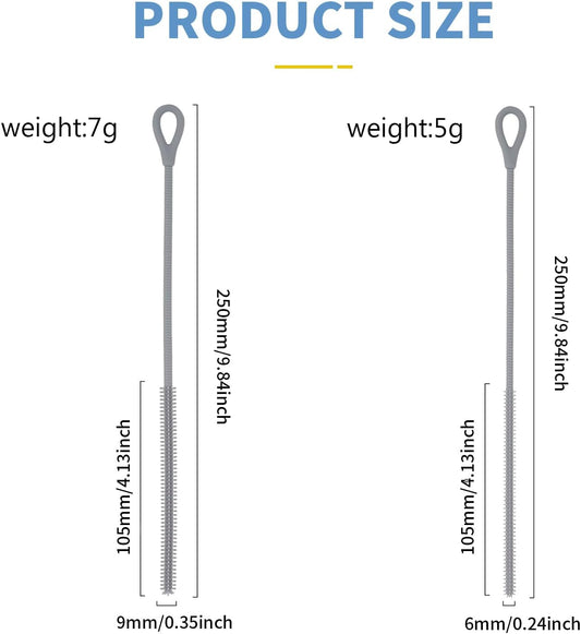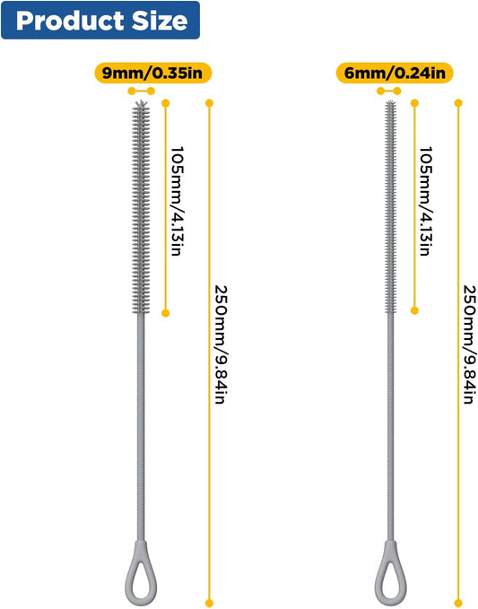 2Pcs Silicone Straw Cleaner Brush, 9.84in Reusable Straw Cleaner with Bendable Steel Core, Extra Long Soft Bottle Brush for Clearing Glass Straws, Smoothie Straws, 9mm&6mm (Gray)