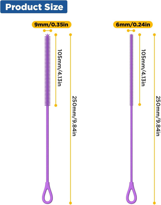 YOTIME Silicone Straw Cleaner Brush, 2Pcs Reusable Straw Brush Extra Long for Cleaning Tumbler with Handle and Glass Metal Smoothie Straws, Non-slip Handle Soft and Bendable, 6mm+9mm, Purple