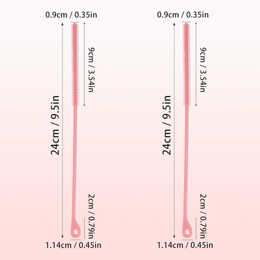 2pcs Silicone Straw Cleaner Brush, 9.5in Extra Long Reusable Straw Brush for Stanley, Metal, Glass Straws, Bendable Travel Drinking Bottle Lid Cleaning Tool for Crevice Pipe Tube (Pink)