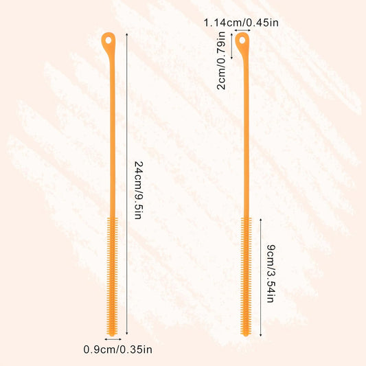 2pcs Silicone Straw Brush, 9.5in Straw Cleaner Brush Extra Long Cleaning Brushes Reusable Travel Drinking Bottle Lid Cleaning Tool for Stanley Metal Glass Straws (Orange)