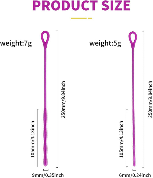 2Pcs Silicone Straw Cleaner Brush, 9.84in Reusable Straw Cleaner with Bendable Steel Core, Extra Long Soft Bottle Brush for Clearing Glass Straws, Smoothie Straws, 9mm&6mm (Purple)