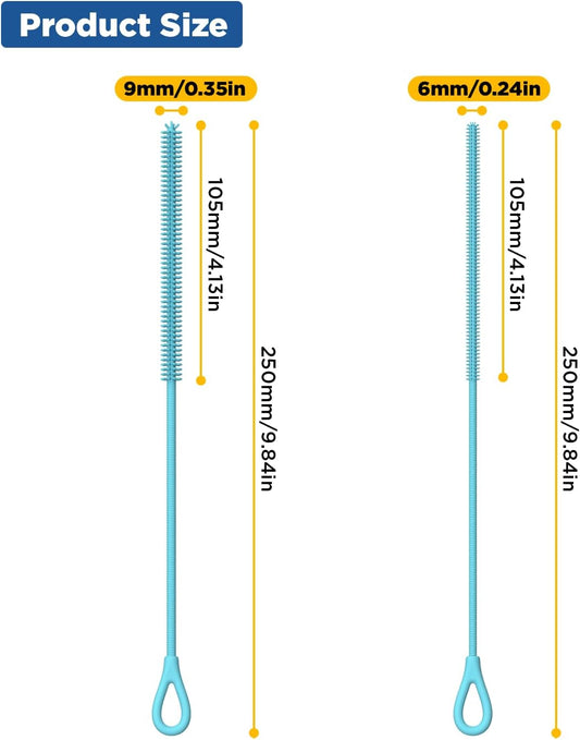 YOTIME Silicone Straw Cleaner Brush, 2Pcs Reusable Straw Brush Extra Long for Cleaning Tumbler with Handle and Glass Metal Smoothie Straws, Non-slip Handle Soft and Bendable, 6mm+9mm, Blue