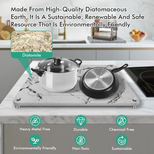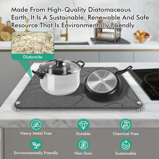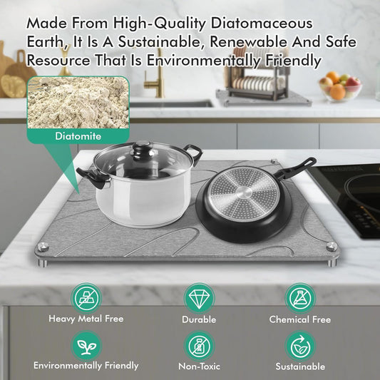 Stone Drying Mat for Kitchen Counter19.7"x 15.7"- 180° Steam-Cured for Smooth Absorption, Quick Dry Heat-Resistant Counter Protector with Minimalist Design for Island, A Tidy Kitchen Brings Joy