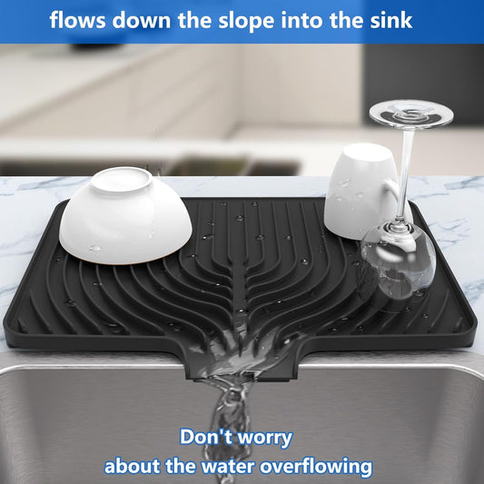 Dish Drying Matt for Kitchen Counter,18"×12"Silicone Dry Rack Mat with Built in Drain, Kitchen Dry Mats for Dishes Drying Pad for Counter(black)