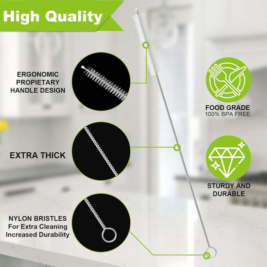 Long Straw Cleaner Brush Set Travel: 8 Pack Straw Brush Cleaner for Cleaning Straws, Stainless Steel & Bendable Nylon Brushes - Durable & Rust Resistant Cleaning Solution for Home and Office