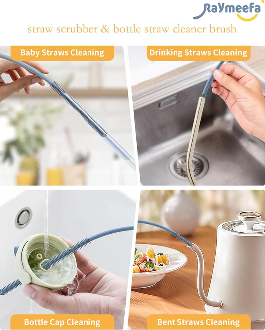 Extra Long Straw Cleaner Brush,Reusable and Soft Silicone Straw Cleaning Brush to Clean Crevice(Blue)