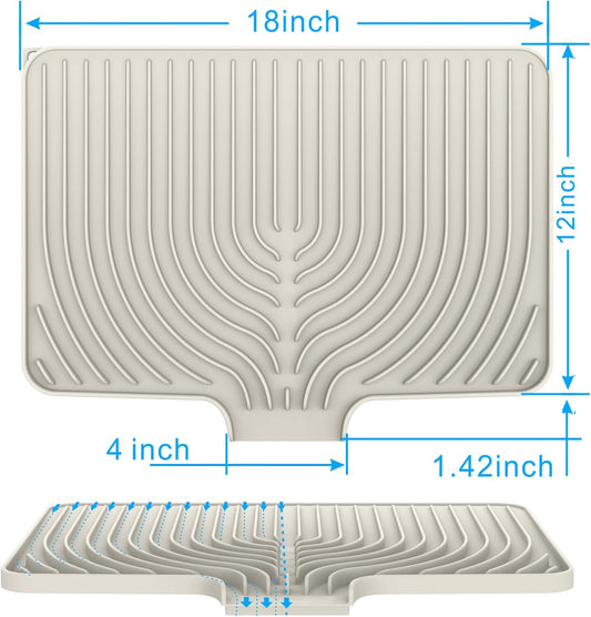 Dish Drying Matt for Kitchen Counter,18"×12"Silicone Dry Rack Mat with Built in Drain, Kitchen Dry Mats for Dishes Drying Pad for Counter(18"×12"Cream)