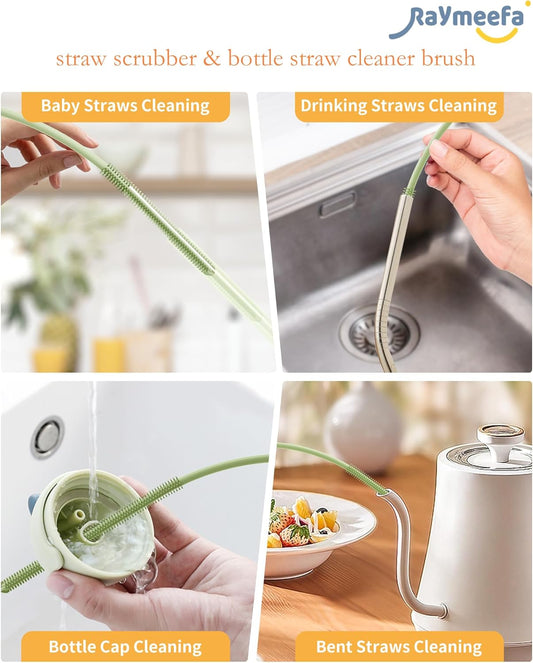 Extra Long Straw Cleaner Brush,Reusable and Soft Silicone Straw Cleaning Brush to Clean Crevice(Green)
